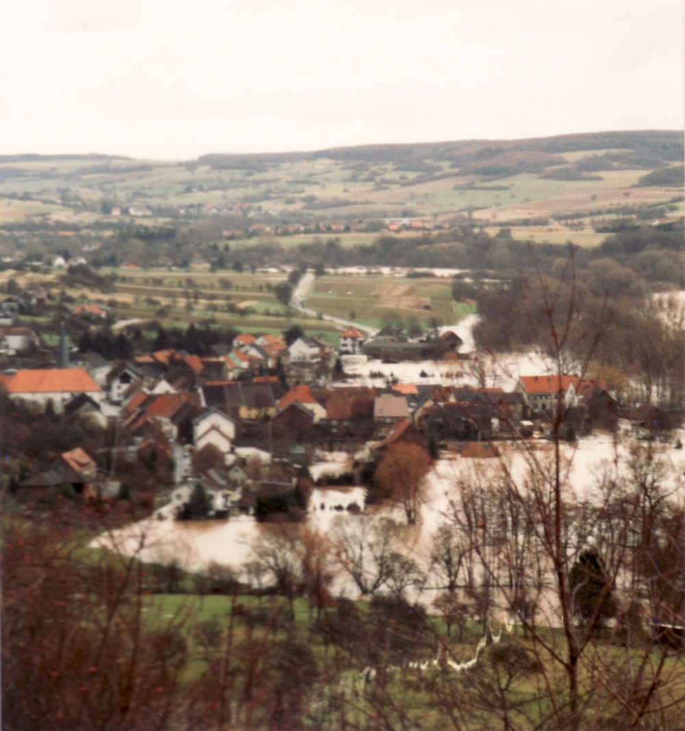 Die ehemalige Mühle am Bliesweg, damals von der Eigentümerin Frau Kräuter bewohnt. Der im Keller gelagerte Heizöltank wurde überflutet, der Geruch infolge des Ölaustritts war auch außerhalb des Gebäudes noch lange wahrnehmbar.