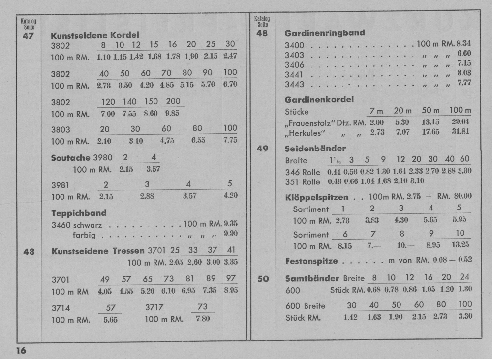S. 16: Preisliste zu Katalog-Seiten 47-50